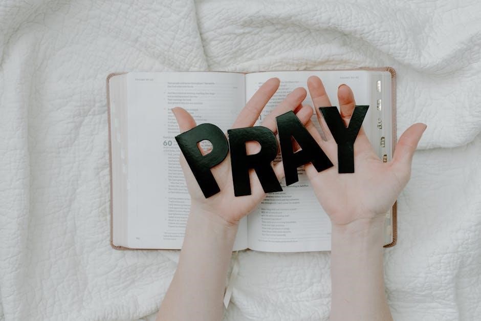 Consistency is key; schedule dedicated prayer times and use the PDF’s structure to guide your devotion․